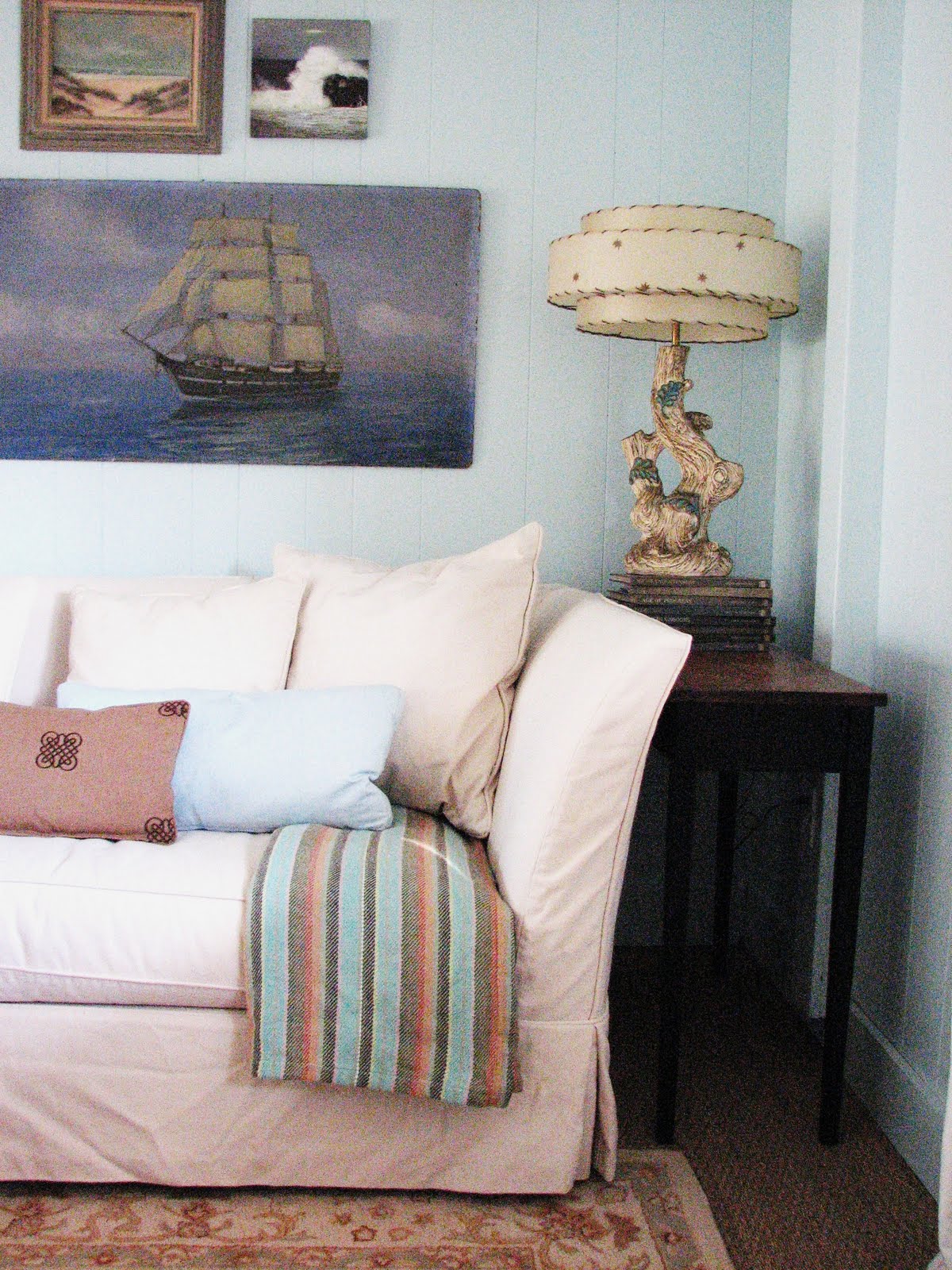 I am so taken with that ship painting behind the sofa with the blue cushion, I think I saw the same one or similar in a picture in Lauren's portfolio – if only it was a stylish find under £25 dollars but I guess it is unique! It's wonderful anyway. Thanks for the finds!