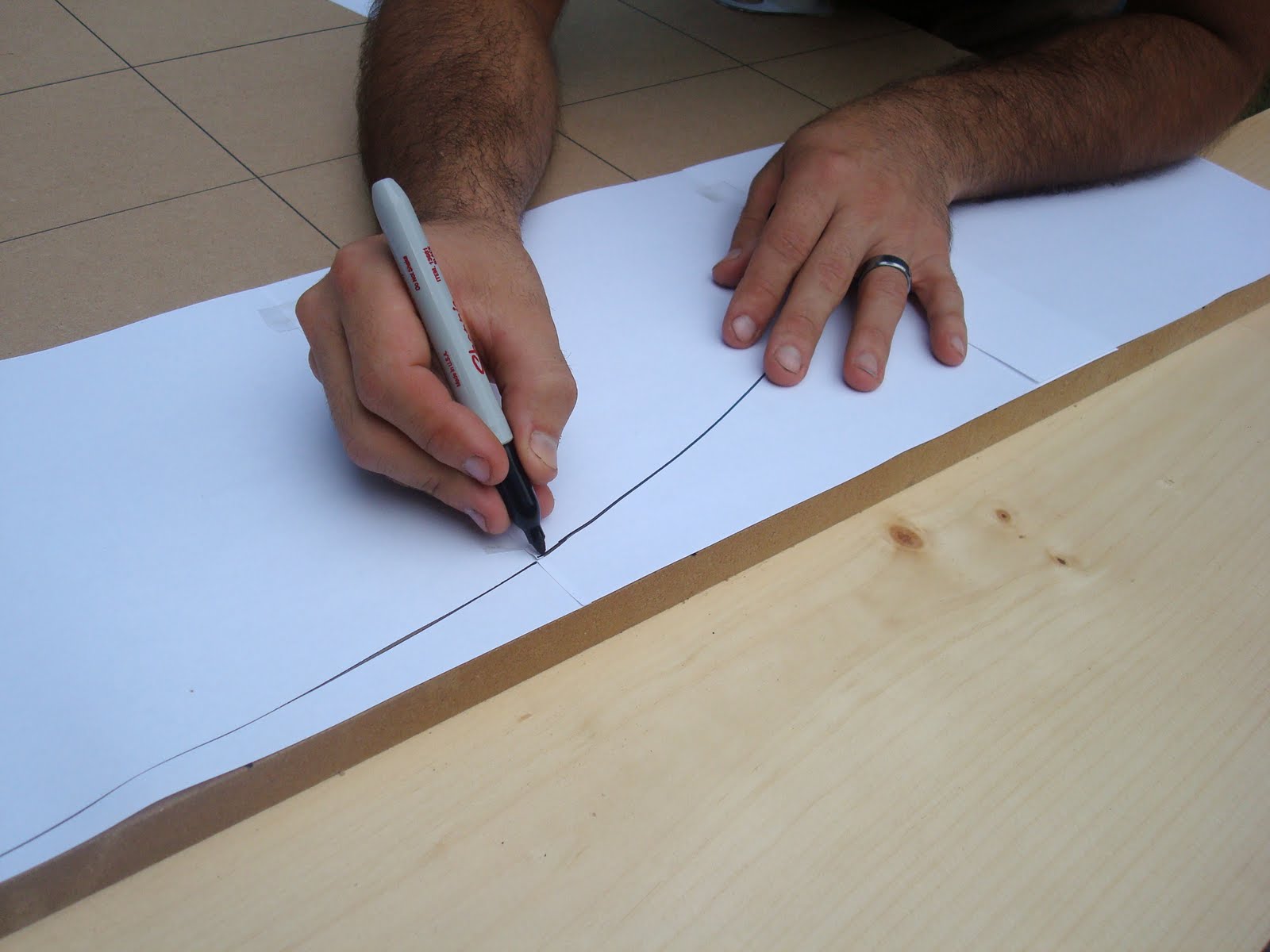 First we used paper to create one half of the curve. This is done free hand so you can make it as extreme as you like.