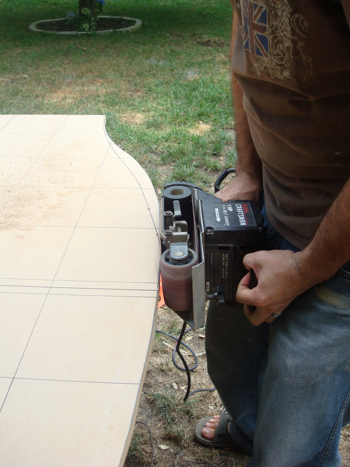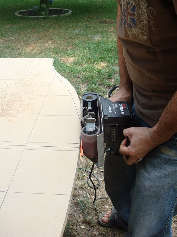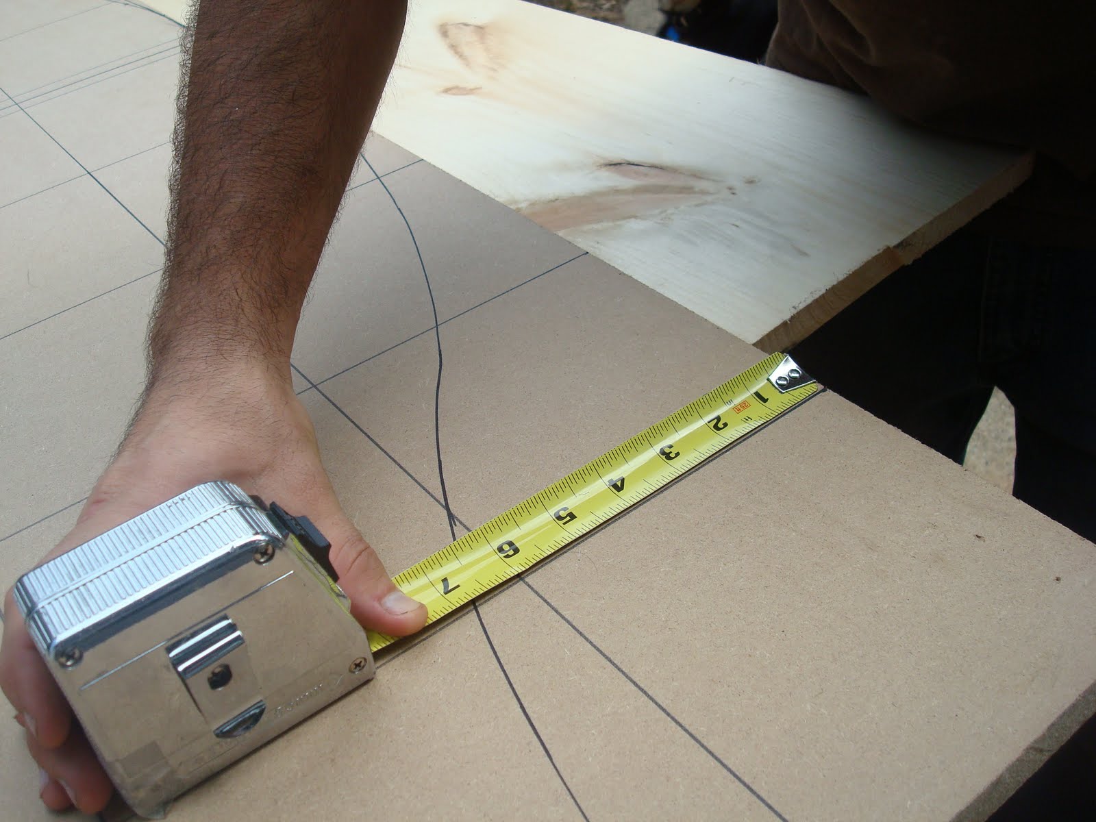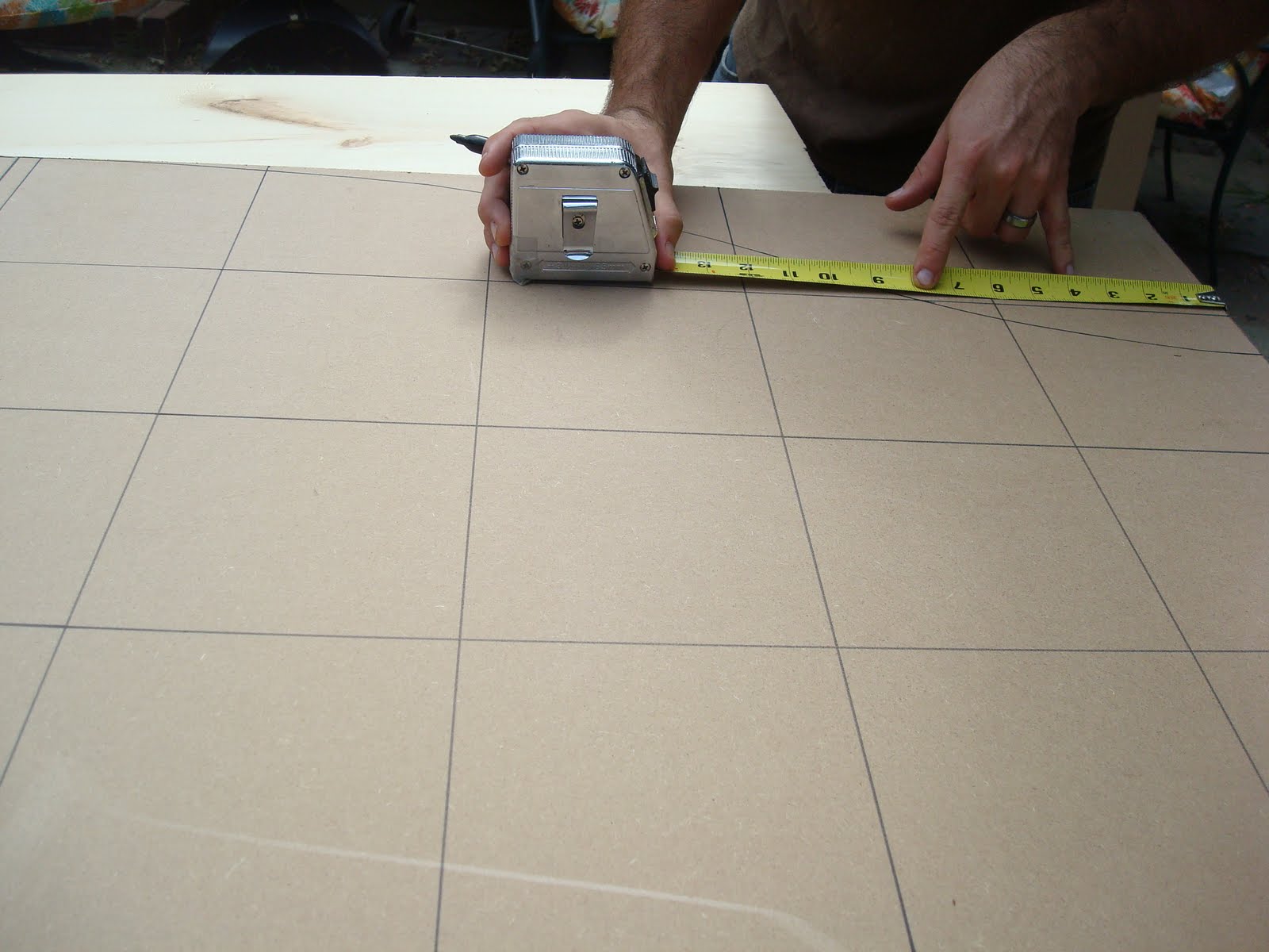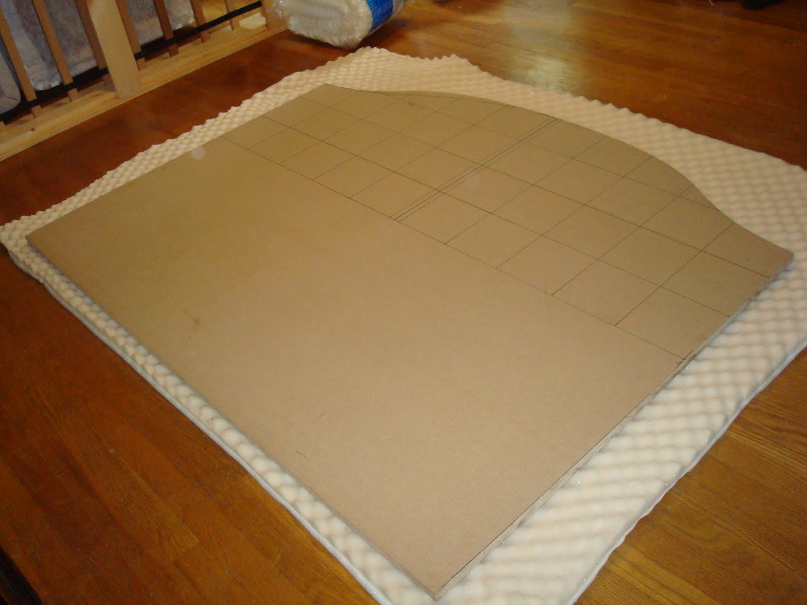 The headboard is made out of MDF and with the help of a grid you can get the perfect curve. Jon made 6″ x 6″ grid boxes in order to check our curve. The grid is also helpful if you want to tuft your headboard.