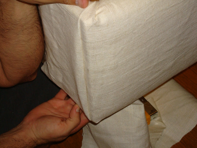 I can see padding the frame and the cream linen wrapped around it. How many times have I stumbled into this box frame in the night? The cushioning alone would work wonders. This might happen. Simple enough with a staple gun. Great photos and inspiration.