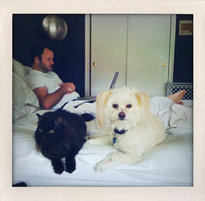 Thanks for sharing your day with us Beth. I love the dog and the cat together on the bed. My hubby does the same -earplugs in watching a movie on his Ipad. Is it a guy thing then?
