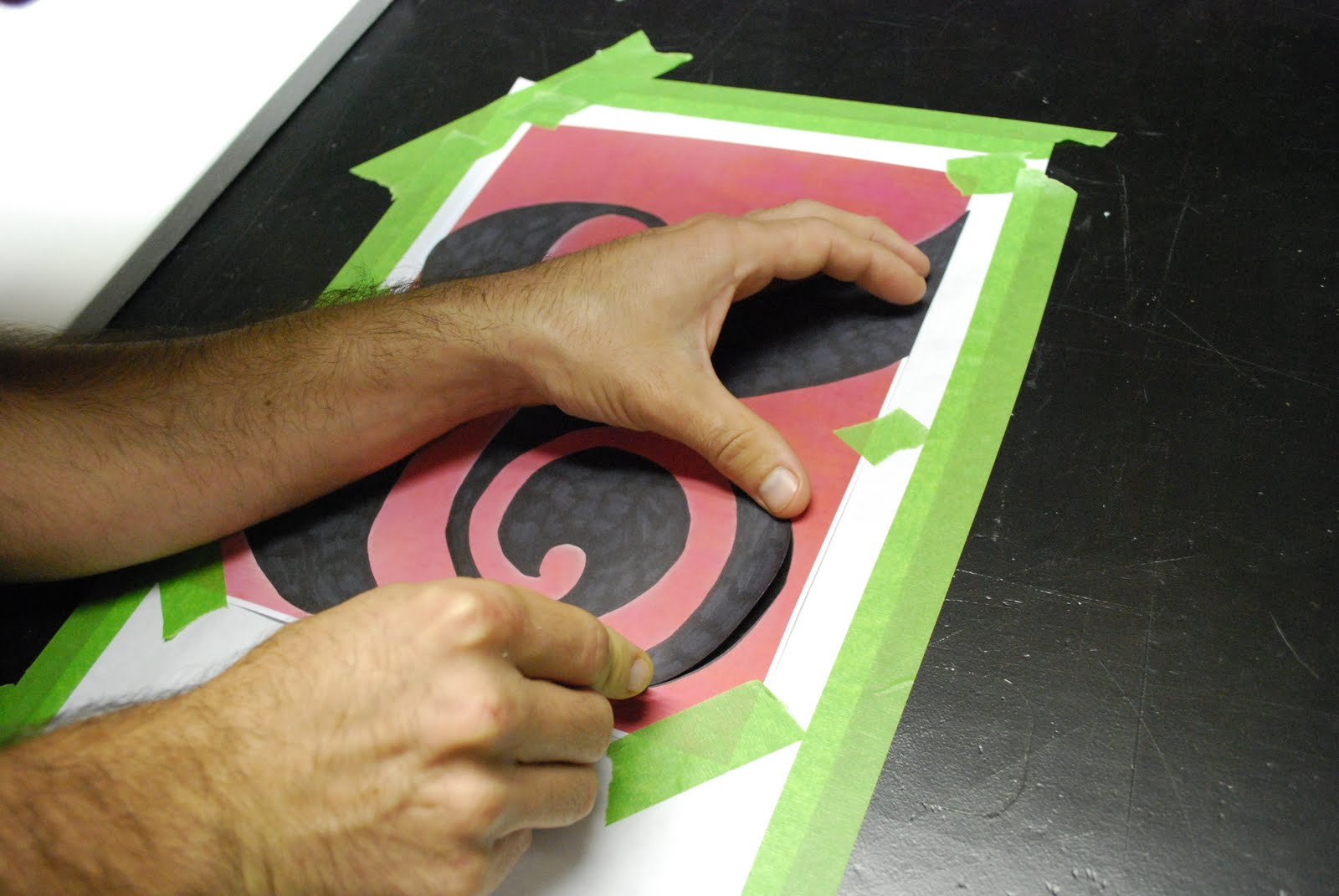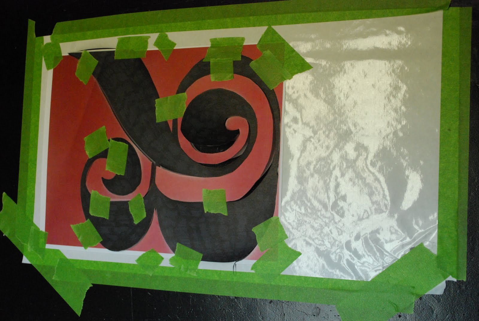 As you go about cutting out the ampersand the freed pieces will start curling up and make it difficult to continue tracing. We had to keep taping it down every couple of cuts: