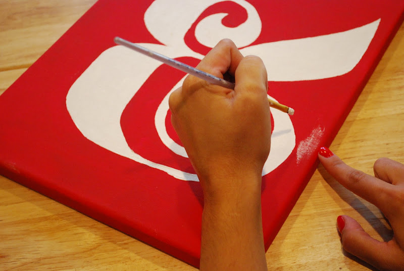 Then I went around with white paint and painted the ampersand. Just be careful if you are a lefty like me. I smeared some white paint while I was doing it.
