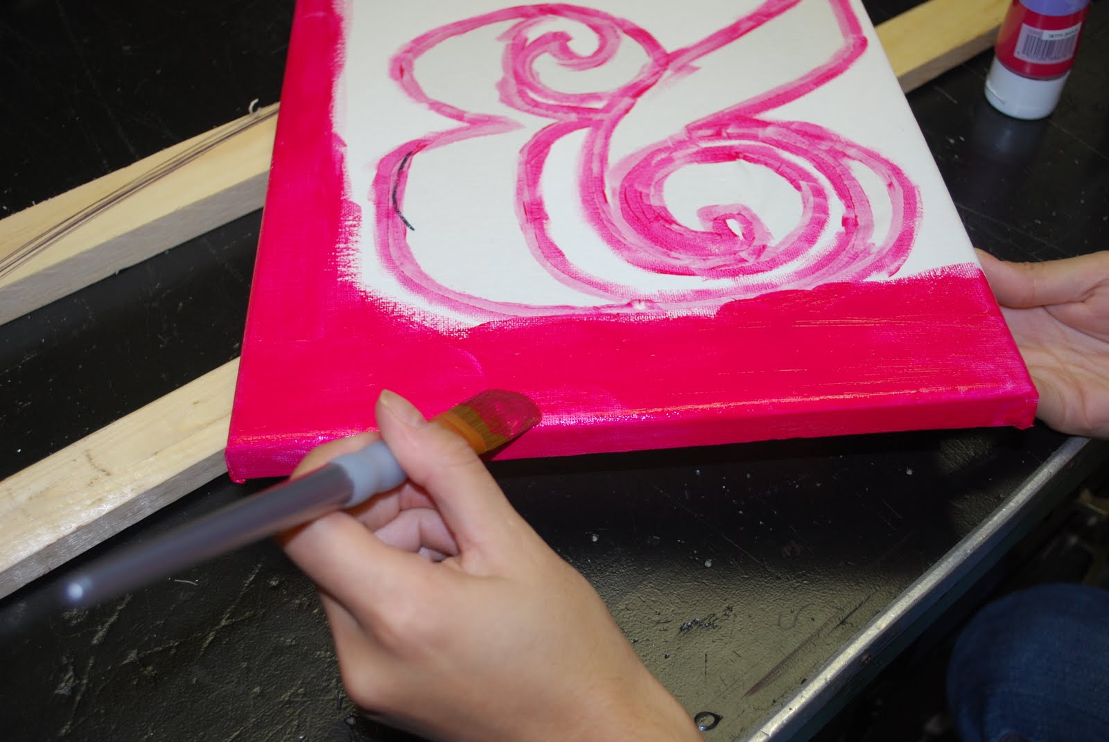 – Use contact paper to cut out an ampersand, place on canvas and paint around it.